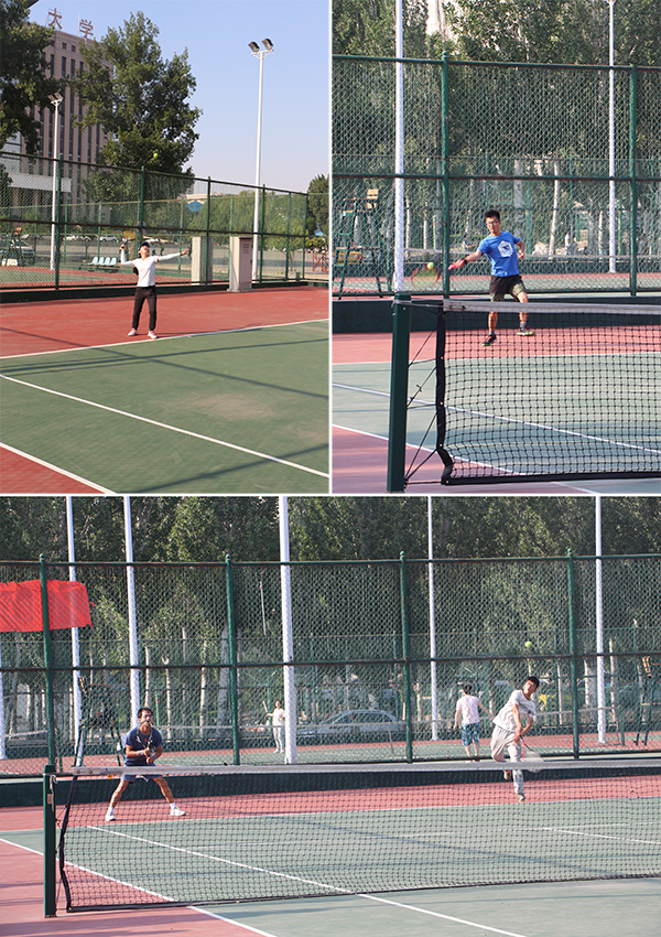 本次网球赛分为个人赛和团体赛,团体赛采用男子单打,女子单打,男子双打的三局两胜赛制。在男子单打比赛中,双方开场势头很足,你来我往,进攻防守;在女子单打比赛中,卓越的发球,精彩的扣杀,出色的网前截击,将比赛带入高潮;在男子双打比赛中,我院运动员表现出了完美的配合,绝佳的战术,杰出的身体天赋,过硬的心理素质,精彩的比赛博得了在场观众的阵阵喝彩声。