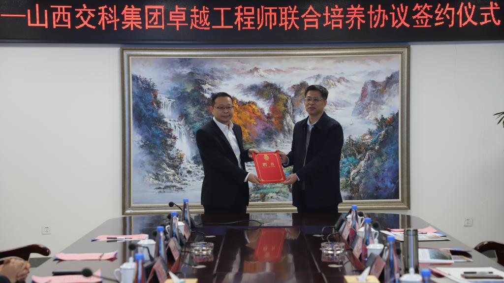 与山西交通科学研究院集团有限公司签订了卓越工程师联合培养协议,副校长杨风暴为山西交通科学研究院集团有限公司专职党委书记、副董事长潘铁颁发了山西省卓越工程师学院(javbus